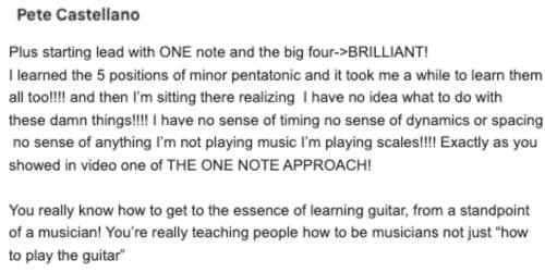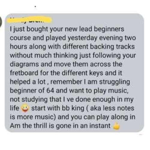 I have tested this method on my students inside my membership, and they’ve gone from zero to playing solos all over the neck, to any song, in just a month!