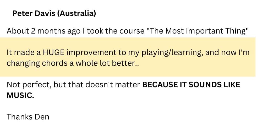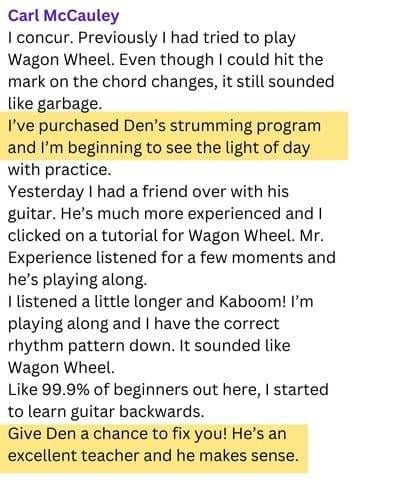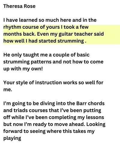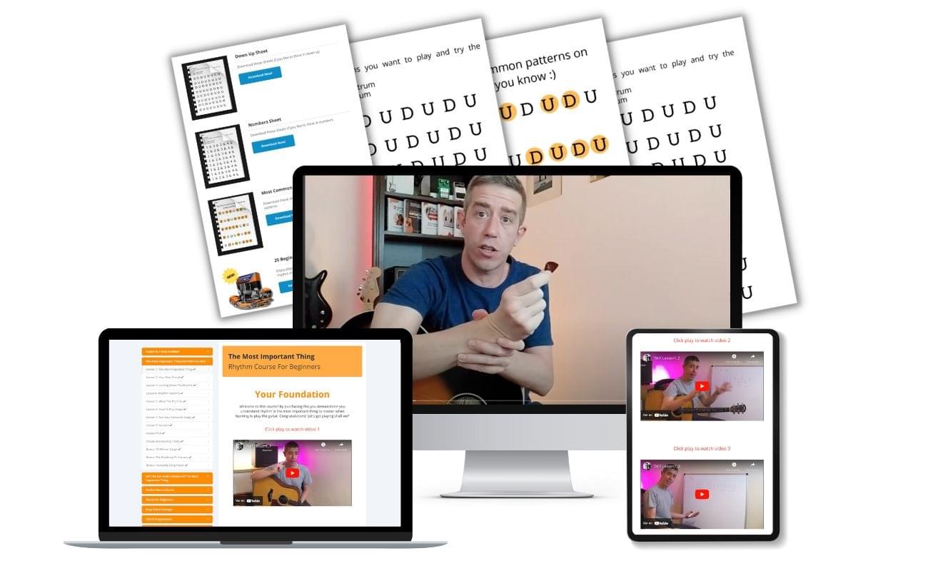 No matter how many chords you know, or how fast you can change through them, if you don't play with rhythm it won't sound like music.